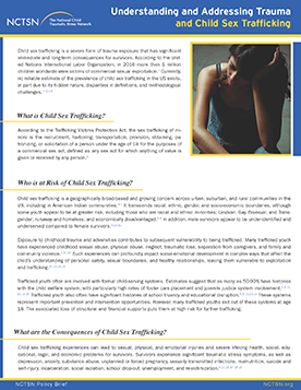 向决策者和其他利益攸关方提供关于儿童性贩运及其与儿童创伤的关系的概述,以及与政策相关和以儿童创伤为重点的建议,以协助他们应对儿童性贩运。2021年3月更新。