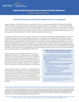NCTSN资源 循证实践:NCTSN职位声明 类型:财务状况表 说明NCTSN对经历过创伤事件的儿童和成人的临床治疗原则和使用的承诺,这些创伤事件经历了严格的科学调查,并符合NCTSN内临床实践的伦理责任。 视图