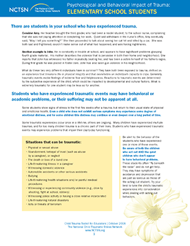 研究表明,大约25%的美国儿童在16岁时至少会经历一次创伤事件。儿童对创伤的反应会严重影响学校的学习和/或行为。学校是为经历过创伤的儿童提供支持的关键系统。管理者、教师和工作人员可以通过识别创伤反应、在教室内照顾和应对受创伤的学生以及在必要时将儿童转介给外部专业人员来帮助减少创伤对儿童的影响。国家儿童创伤压力网络开发了工具和材料,以帮助教育工作者、学校工作人员和管理人员了解和应对受创伤儿童的具体需求。除了下面突出显示的NCTSN资源外,学校工作人员还可以在本网站的创伤知情护理部分了解创建创伤知情学校的更多信息。18luck新利全网