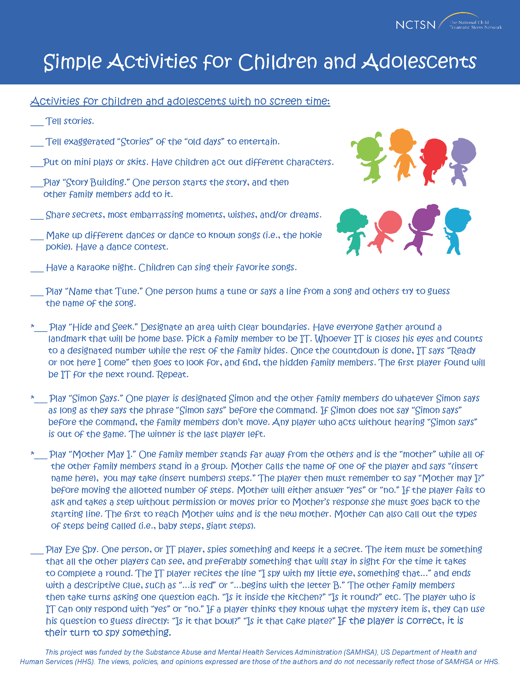 儿童和青少年的简单活动[1]