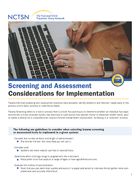 提供提供者考虑,用于实施筛选和评估工作。此事实表提供了在给定系统中选择创伤筛选或评估工具时考虑的指导方针。