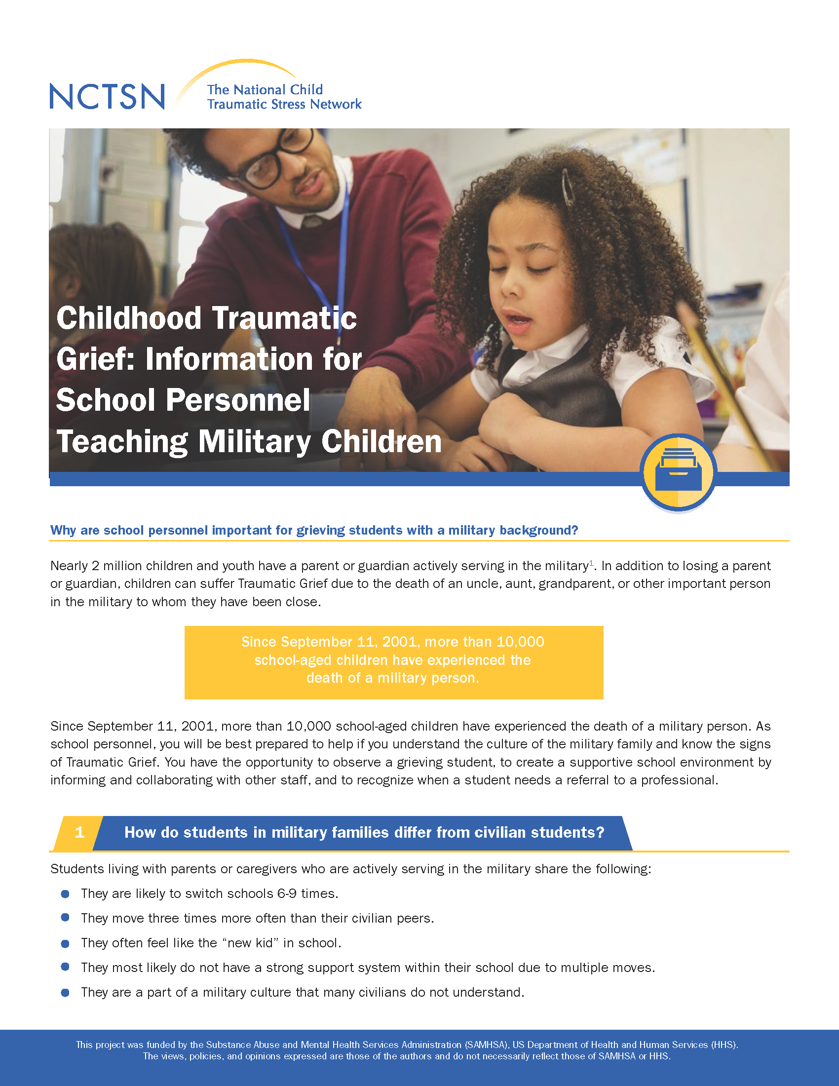 儿童创伤性悲伤:学校人员教育军人儿童的信息[1]