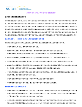 NCTSN资源 关于创伤和无家可归儿童的事实 类型:简报 提供关于无家可归儿童的创伤问题的背景,包括在美国无家可归是什么样子,创伤和无家可归之间的相互作用,项目和服务如何帮助遭受创伤的家庭,以及提供针对创伤的服务。 视图