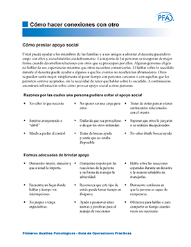 是来自心理急救现场操作指南(PFA)。这份讲义向幸存者提供了寻求社会支持的信息,社会支持的选择,幸存者可以做什么,不应该做什么,以及与外界联系的方法。