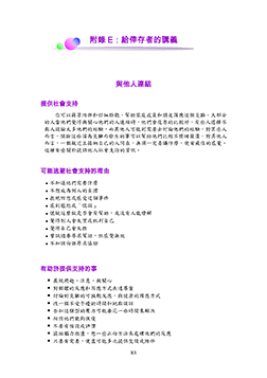 nctsn资源 资源描述 是一项讲义心理急救现场运营指南(PFA)。该讲义提供有关赋予社会支持,人们可能避免社会支持的理由,提供社会支持的良好方法,可能干扰支持的行为以及社会支持不够的行为的良好方法。这是中文版与梦人 出版于2011年 下载 打印机友好版本
