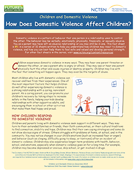 为父母提供如何与孩子谈论家庭暴力的信息。本实况报道讨论了如何管理生活在家庭暴力情况下的儿童的挑战性行为。
