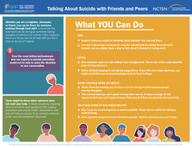 nctsn资源 资源描述 提供有关支持青少年与朋友和同行的信息的信息。这个事实表包括您可以做的,行动词,获得帮助的技能,以及关于如何帮助作为同伴的神话和事实。此资源对青少年12岁及以上最有用。 出版于2021. 下载 打印机友好版本