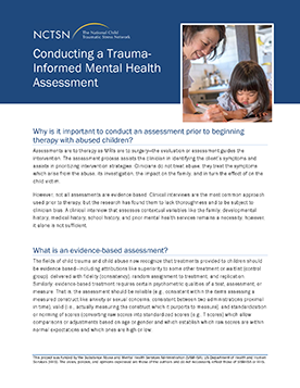 提供信息说明为什么进行以创伤为基础的心理健康评估对在CAC工作的人很重要。新利18博彩本实况报道介绍了什么是基于证据的评估,可用的一些工具,以及在进行评估时应注意哪些症状。