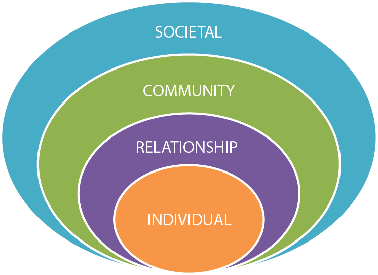 社会:儿童的性特征化、基于性别的暴力、严格的性别角色、对同性恋和跨性别者的恐惧、容忍他人被边缘化、对贩卖儿童缺乏认识、对受剥削青年缺乏资源、社会不公正、结构性种族主义以及容忍社区暴力和关系暴力。- 社区:学校和社区资源不足、社区暴力、社区社会规范、团伙存在、该地区的商业性行为、该地区的流动男性人口、贫困和缺乏就业机会。