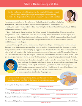 Brinda a los niños información y actividades para ayudarles a lidiar con dolor después de una lesión, enfermedad o internamento médico。这是我们的信息来源他的名字是Estrés Traumático Médico Pediátrico,他的名字是"健康服务证明.