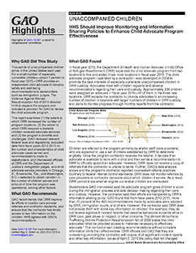 评论2016年难民安置办公室(ORR)办公室,可提供无人陪伴的儿童。本报告特别审查了儿童倡导计划地点并倡导弱势儿童的服务,并提供建议。